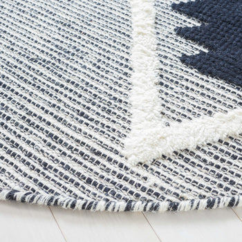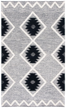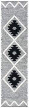 Enhance your living space with this exquisite hand-loomed area rug, sized 3' X 5', boasting a sophisticated black and ivory color palette. This small rectangular rug features a chic and modern pattern with geometric motifs, adding a touch of elegance to any room. With a comfortable height of 1/4", it lays gracefully on your floor, providing a soft underfoot with its plush blend of 60% wool and 40% cotton.