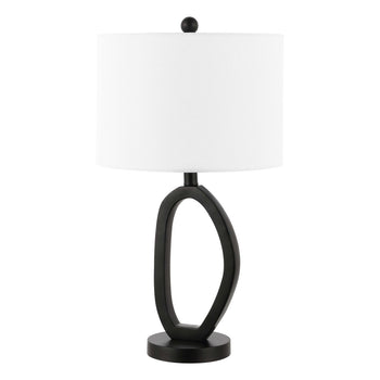 Uplift any bare surface with the sophisticated drama of our Verne table lamp. The sleek and graceful appeal of our table lamp is accentuated with a cut-out silhouette. It combines a stunning sculptural profile with a functional design to bring effortless style and drama to your home. Completed with a modern drum shade and a contrasting black body, the table lamp adds a stunning impact to a nightstand, side table, or dresser. When lit, the lamp diffuses soft light to amp up the mood and lighting of any corner.