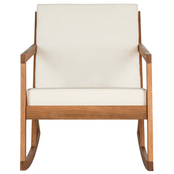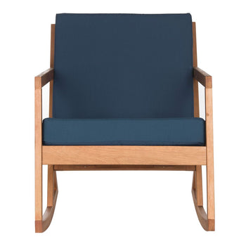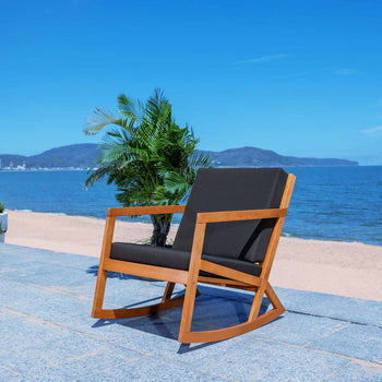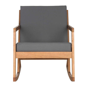 Contemporary with a nod to hand crafted Shaker individuality, this elegant outdoor rocking chair is destined to become a new American classic. Made from eco-friendly eucalyptus wood in natural finish, it comes with easy care front and back cushions.