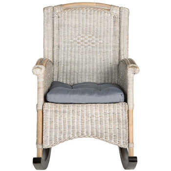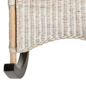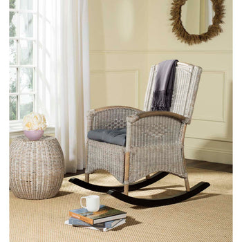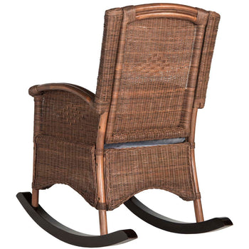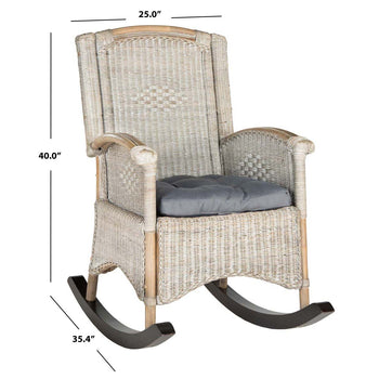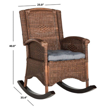 Enrich your leisure Decor with the classic charm of this flawlessly detailed Verona Rocking Chair. Diamond weaved accents stand out from Verona's rattan back and sides, while exposed frame arching armrests, cushioned seat, and smooth wood runners provide stately comfort for max relaxation. Verona's antique finish makes it ideal for any room's color palette.