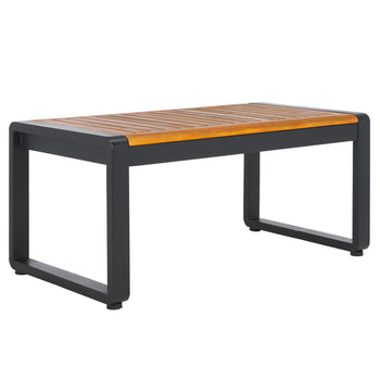 The set includes two single chairs, one double sofa, and a matching coffee table, each piecing together to form a cohesive outdoor retreat. The coffee table features a wooden tabletop perfect for holding beverages, snacks, or decorative items, enhancing the functionality of your outdoor space.