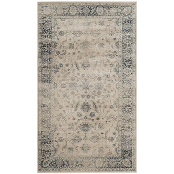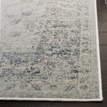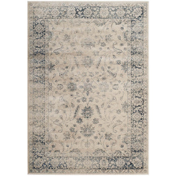 Featuring an intricate pattern that echoes classic designs, this rug showcases detailed floral motifs and ornamental borders in a stunning combination of stone and blue hues. The slip-resistant quality ensures safety and stability, making it a practical and stylish choice for your space.