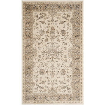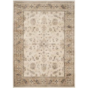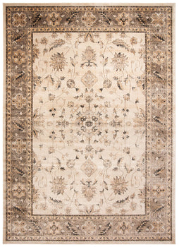 The area rug?s exquisite pattern showcases timeless elegance, featuring a harmonious blend of floral motifs and intricate border details that evoke the grandeur of classic design. The color palette is a sophisticated combination of stone and caramel hues, lending itself to a wide range of interiors from traditional to contemporary.