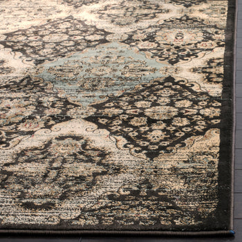 Elevate your space with a touch of timeless elegance with our Small Rectangle area rug, measuring a versatile 4 feet by 5 feet 7 inches. This rug boasts a compelling pattern featuring intricate medallions and botanical motifs in a stunning contrast of bold black and serene light blue hues, accentuated by subtle cream undertones.