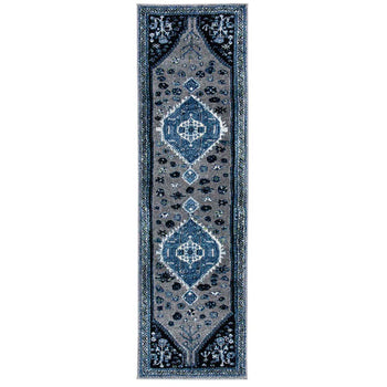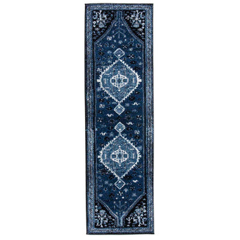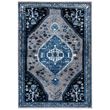 The visually striking pattern features a geometric central motif encapsulated by intricate borders, reminiscent of vintage designs reimagined for contemporary decor. Floral accents and traditional symbols imbue this rug with a sense of timelessness, bridging historical artistry with modern living. Whether nestled in your home office, greeting guests in the foyer, or adding a splash of color to your bedroom, this Turkish-made area rug promises both resilience and allure.