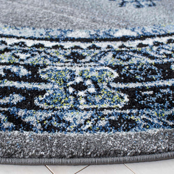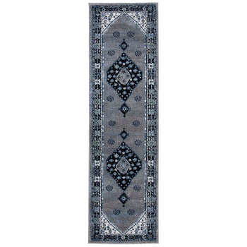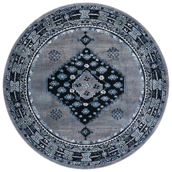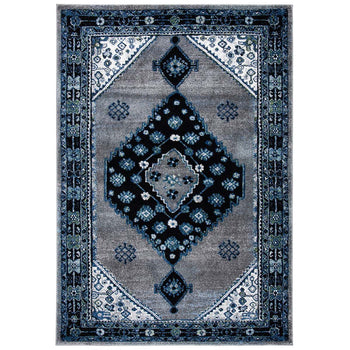 Elevate your living space with the exquisite artistry from Turkey with this 2'-7" X 5' Small Rectangle area rug. The rug showcases a harmonious blend of rich blues and striking blacks, creating a mesmerizing canvas for the timeless Transitional style design. Crafted on a power loom with precision, this rug features a versatile and durable polypropylene construction with a comfortable height of 5/8".