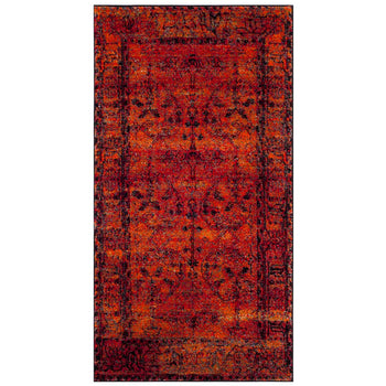 The oriental-inspired pattern, rich with cultural history, adds a layer of depth to the rug's appeal. Fiery orange hues are interwoven with subtle hints of contrasting colors, creating a lively yet harmonious design that stands out without overwhelming your decor.