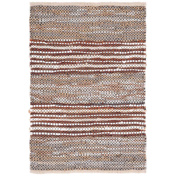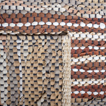 Styled for today's fashion-focused decor, Vintage Leather Rugs indulge the senses with ribbons of genuine leather in textured flat weave patterns and engaging earthy hues. A swank interpretation of traditional cowhide area rugs, Vintage Leather Rugs lend edgy elegance to mod-chic home furnishings.