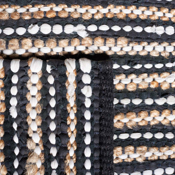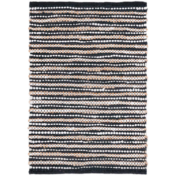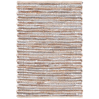 An eye-catching grey and ivory color scheme lends a versatile yet modern ambience to your decor, while the luxurious blend of 90% leather and 10% jute offers both durability and texture that you can see and feel. Every strand is hand woven by skilled artisans in India, guaranteeing a one-of-a-kind piece that reflects a tradition of craftsmanship.