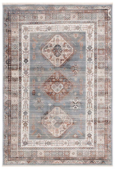 The rug's traditional style is accented by a harmonious pattern that features intricate medallions and a decorative border, providing a perfect balance of sophistication and charm. Whether laid down in your living room, dining area, or bedroom, this rug is sure to enrich your decor with its classic allure and subtle color palette.