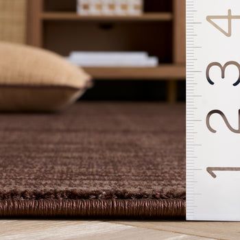 Expertly power loomed, this rug blends 49 percent polypropylene, 30 percent cotton, and 21 percent polyester. This combination offers a soft feel underfoot while maintaining a sleek look. Its solid color pattern provides a versatile base, perfect for layering with other decor elements.