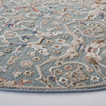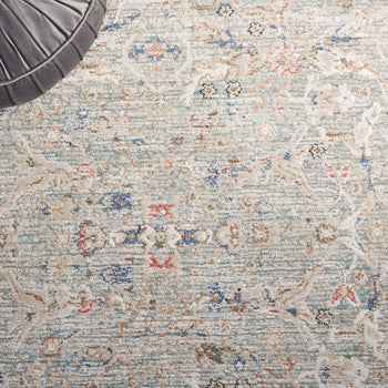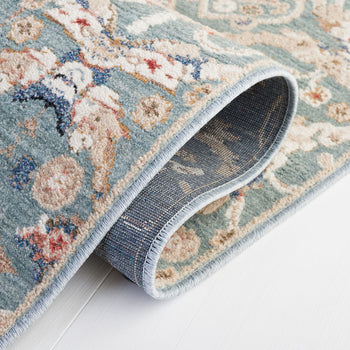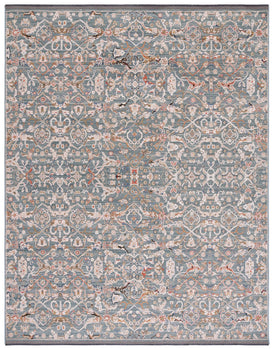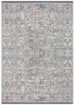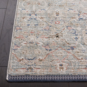 The rug captivates with its handsome Ivory and Navy tones, set in a charming pattern that features intricate floral and geometric motifs. The design exudes a sense of timeless elegance and versatility, rendering it an ideal choice for both modern and classical interiors.