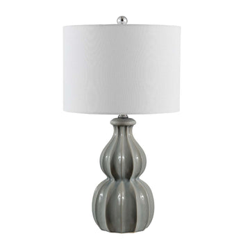 This Wade Table Lamp abounds with decorative depth and visual intrigue, making it ideal for today's contemporary Decor. The scalloped double gourde silhouette is absolutely eye catching, while a soft grey finish ensures Wade perfectly accents any room's color scheme.