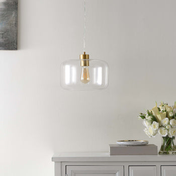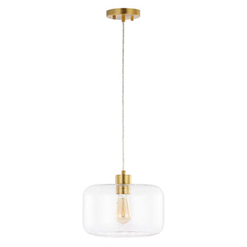 Update your home with the refined elegance of the Warden extendable pendant. Featuring a stunning and mesmerizing clear glass shade, our pendant light uplifts any space with its refined aesthetics. Its simple and eye-catching design is accented with brass to serve as a radiant and stunning focal point in any room. The pendant remains extendable to achieve the right height above your entryway, bedside, kitchen island, or dining table.