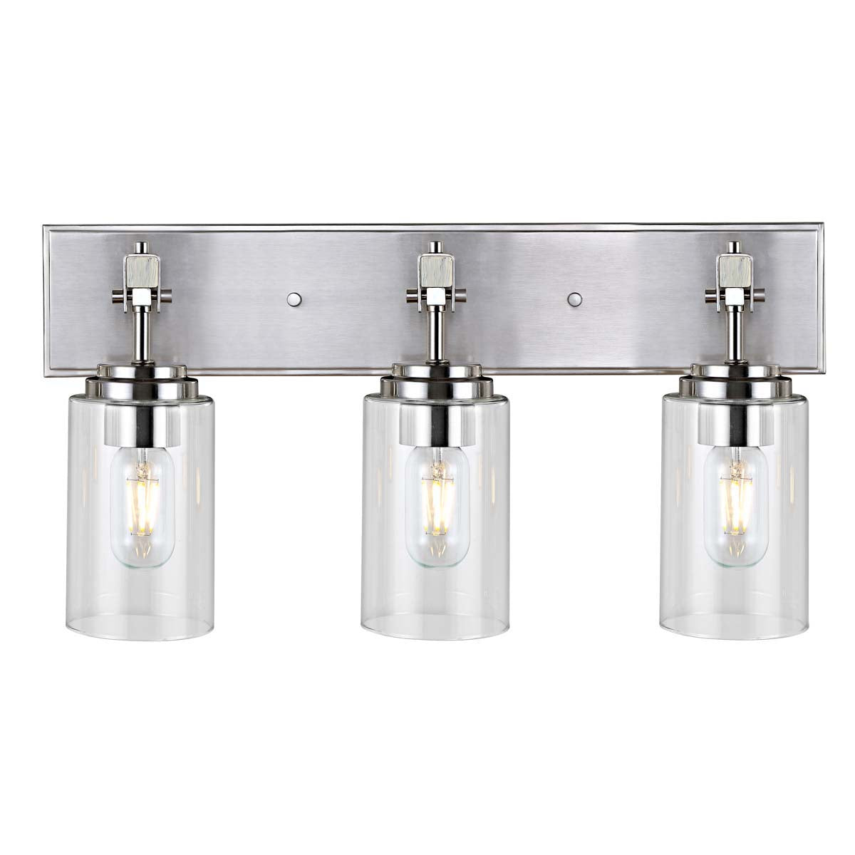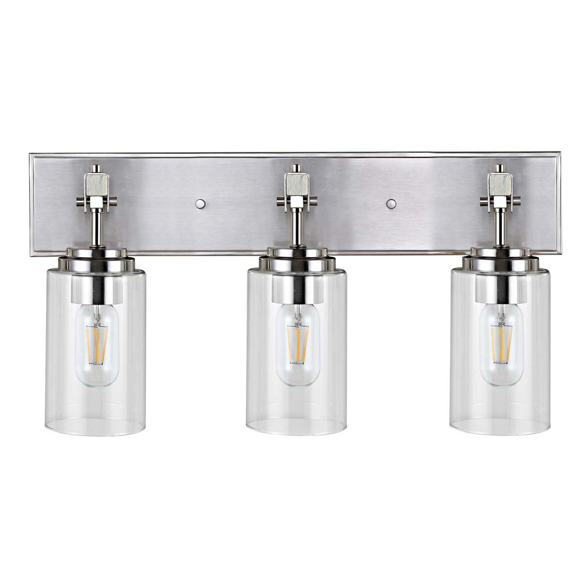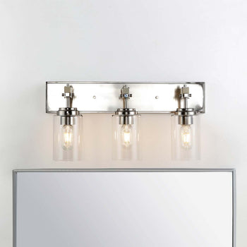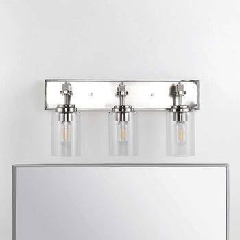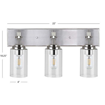 Transform any bathroom into a deluxe urban spa with this contemporary 3 light wall sconce. Finely crafted with metal to highlight its modern style, a beautiful bronze finish with wood texture and square glass shades make a chic statement.