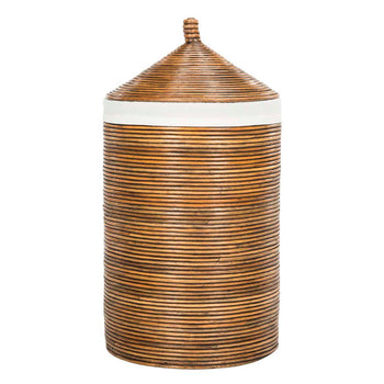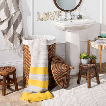 Inspired by a spa resort in Bali, this rattan storage hamper brings clean lines and minimalist style to the laundry room. Designed with a fresh natural hue and a white wash finish, its liner keeps things tidy and organized while its stylish lid keeps things discreet.
