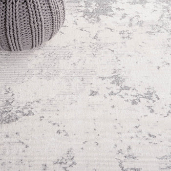 Proudly power-loomed in Turkey, this runner rug boasts a durable blend of 48% polypropylene, 40% cotton, and 12% polyester, ensuring both softness and longevity. The rug showcases a harmonious balance of ivory and grey tones, blended into a distressed abstract pattern that bestows a modern sophistication upon your floors.