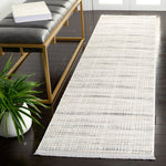 Elevate your space with the sophisticated charm of our Modern Ivory/Grey Runner Rug. Expertly crafted in Turkey, this 2'-2" X 8' runner is an exquisite addition to any hallway or long, narrow space. The rug boasts a pile height of 3/8 inch, providing a comfortable underfoot feel without compromising on durability.