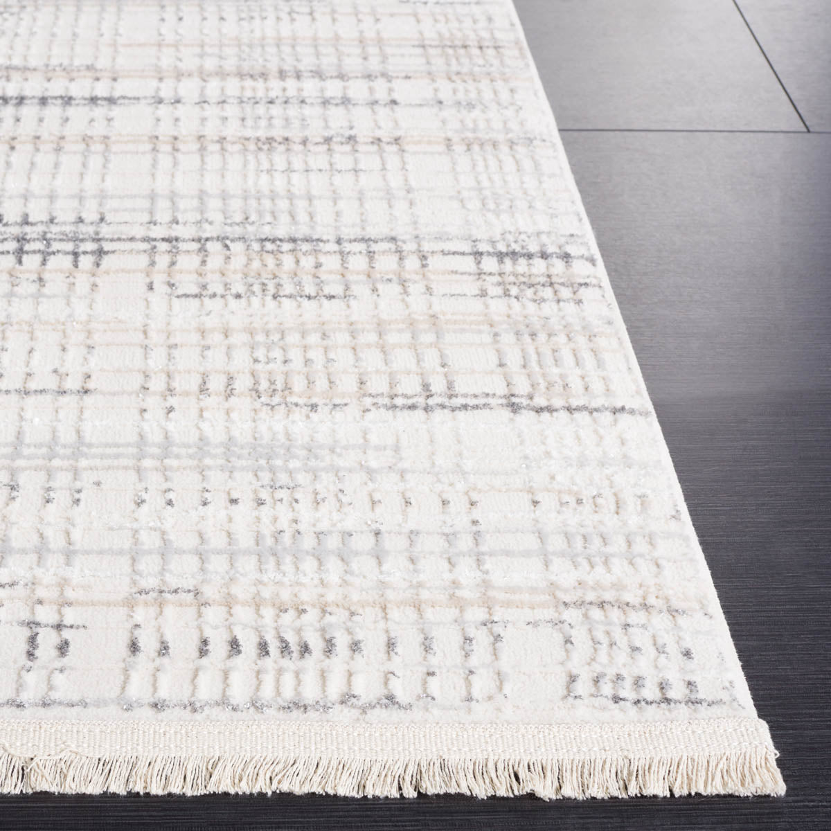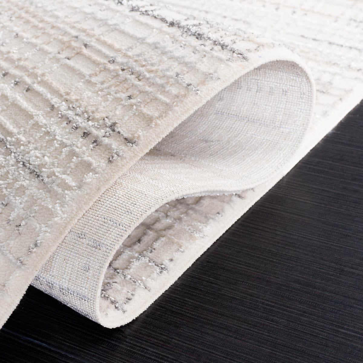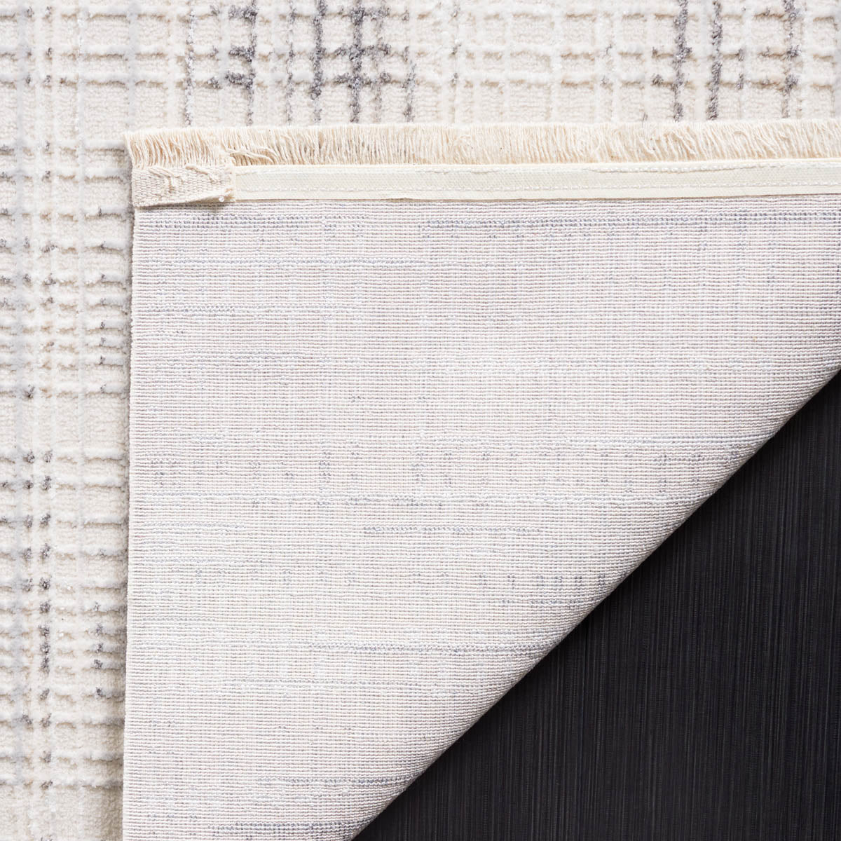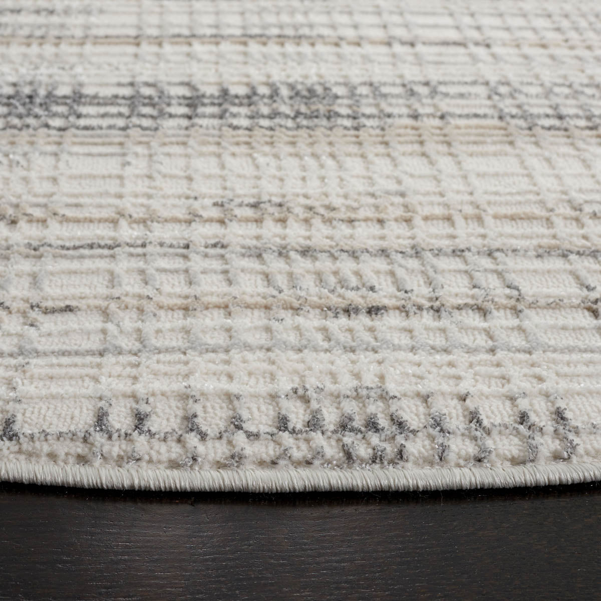 The runner's elegant ivory base is tastefully highlighted by grey accents, creating a pattern that exudes class and contemporary style. The subtle shifts in hues between ivory and grey add texture and dimension, drawing the eye and offering a versatile complement to a variety of decor themes.
