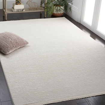 Elevate your space with the timeless elegance of our modern runner rug, designed to complement any decor with its understated ivory hue. Spanning 2 feet 2 inches by 8 feet, this runner is a perfect addition to hallways, entryways, or any long, narrow space in need of an accent. The rug boasts a subtle and sophisticated pattern, featuring an array of gentle lines that add texture and interest without overwhelming the design.