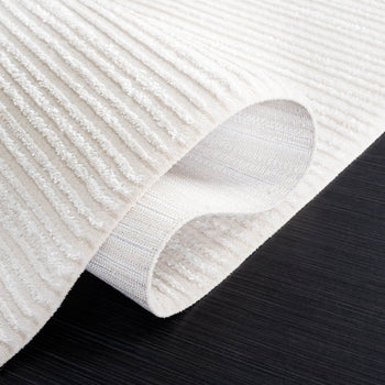 The modern style of this rug is accentuated by its linear pattern, which gives it a contemporary and clean look. Ideal for complementing a variety of interior decor themes, this rug combines aesthetics with practicality. Embrace the chic simplicity of this beautifully made ivory runner rug for a seamless addition to your home that is as enduring as it is elegant.