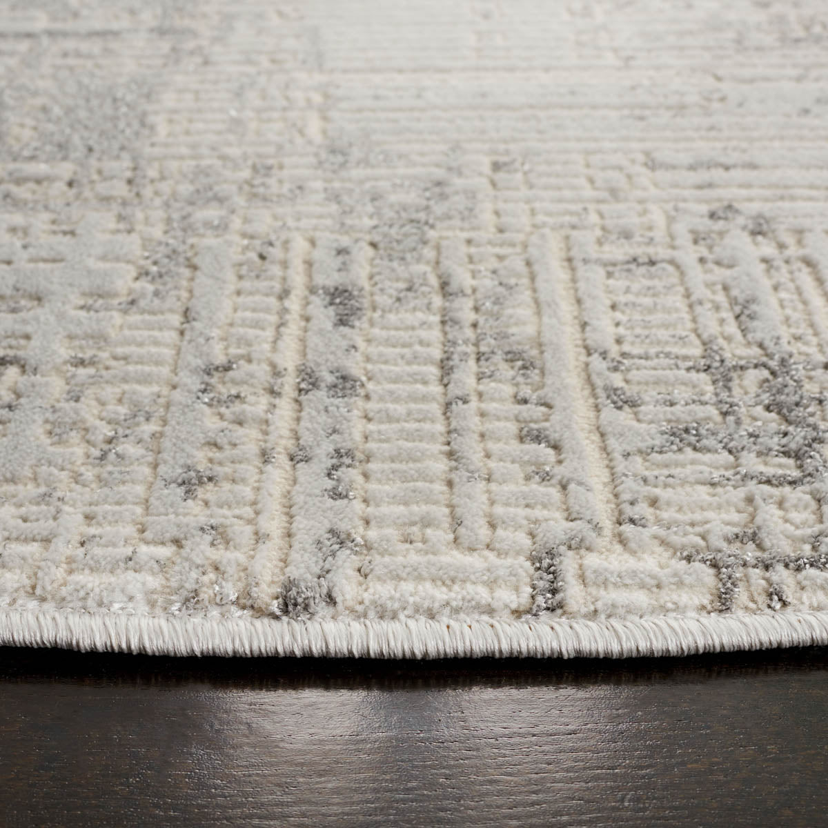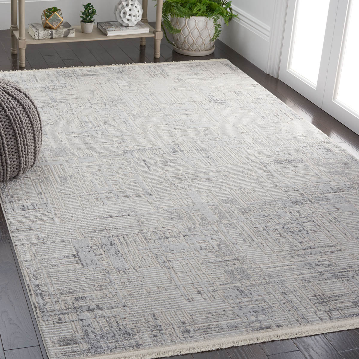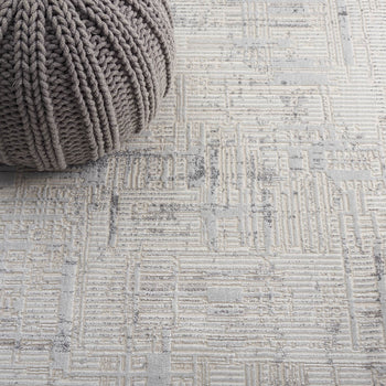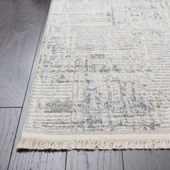 The rug's soothing grey and beige hues are complemented by a subtle and contemporary distressed pattern that can seamlessly integrate into various decor schemes. Its versatile color palette and modern design pattern deliver an aesthetic that is both timeless and on-trend.