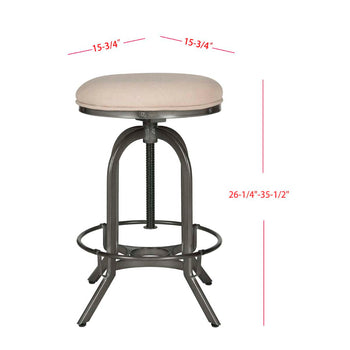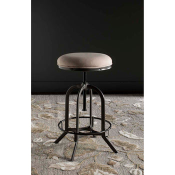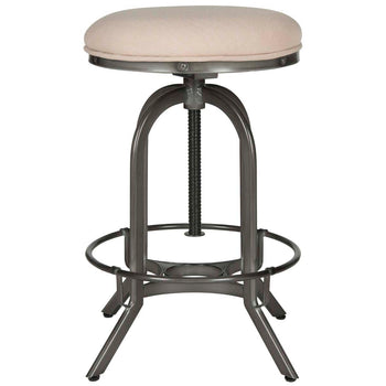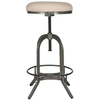 Industrial chic design is always in vogue, and this cool looking perch echoes the lines of mid century drafting stools. Crafted with the look of a vintage piece with beige linen upholstered seat and burnt oak finished frame with foot rest and splayed legs.