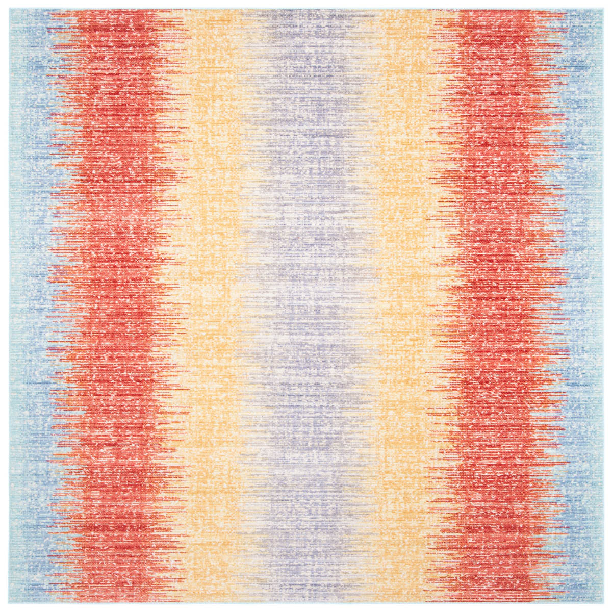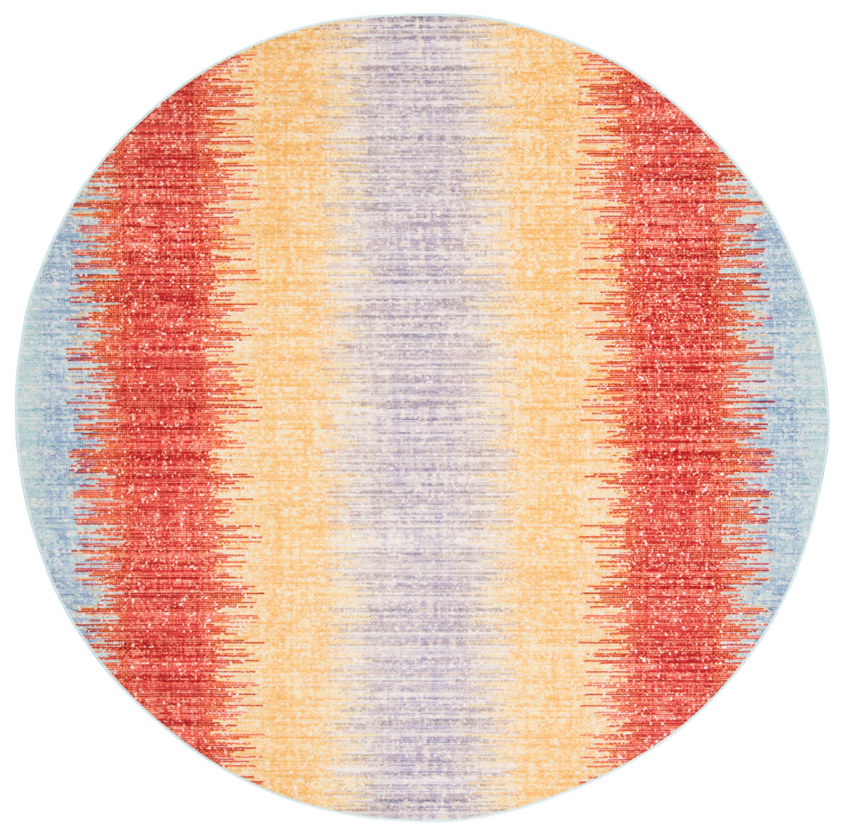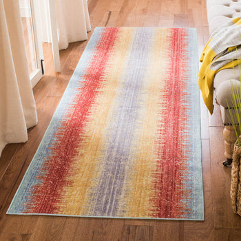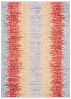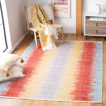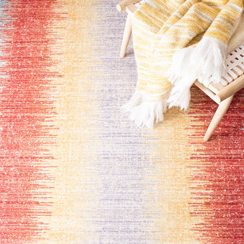 Introduce vibrant energy into your space with the harmonious blend of yellow and purple hues adorning this exquisite 4' X 6' small rectangle area rug. Constructed with precision through the power-loomed technique, this eye-catching piece boasts a durable yet soft-to-touch fabric composition of 45% cotton, 40% polyester, and 15% polycotton, embodying both quality and comfort.