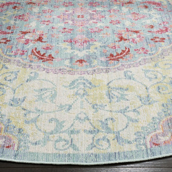 Adorned in a romantic rose and refreshing seafoam color palette, this Turkish-made piece exudes an aura of sophistication and charm. The rug showcases an elegant pattern of intricate florals and classic motifs that whisper tales of timeless elegance and grace. The subtle distressing technique adds a touch of vintage appeal, making it an ideal choice for both modern and traditional interiors.