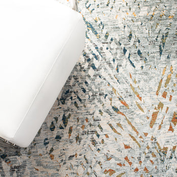 The rug's artistic pattern brings a dynamic and modern flair, featuring an abstract design with splashes of color that complement its neutral base. Its versatile color palette elegantly ties together your room's decor, making it an ideal choice for anyone looking to create a stylish and cohesive space.
