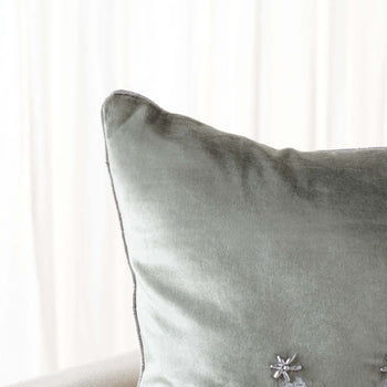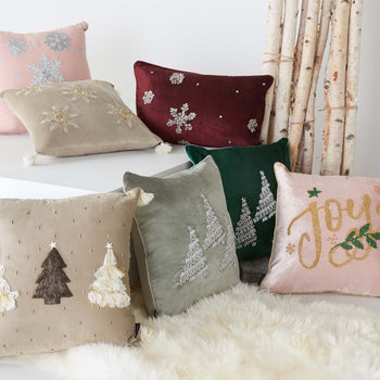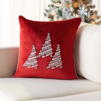 Add a touch of holiday sparkle to your Decor with this wonderful Winter Tree Pillow. Featuring garlands of beaded stars wrapping around three stitched shimmering Christmas trees over a silver cotton-viscose cover, this stunning seasonal accessory is a must-have for today's contemporary homes.