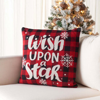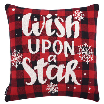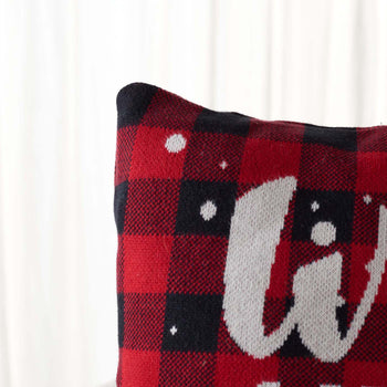 Bring the warmth of the holidays to your Decor with this farmhouse-chic Wish Pillow. Featuring a red and black gingham background that seamlessly accents any contemporary interior, Wish's playful typeface and snowflake motifs announce the arrival of Santa's favorite season in style.