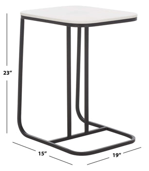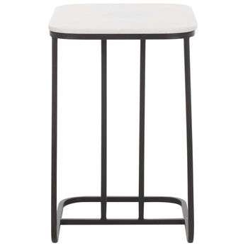 Elevate the style and functionality of your home with our C-shaped Yenna accent table. The crisp lines of our accent table are softened with curved edges to serve as a refined and charming addition to your home. Its stunning white marble tabletop strikes the perfect contrast with the minimalistic black iron base. Both lightweight and space-friendly, our end table fits into any corner to complement your sofa and armchair. The convenient C-shape allows you to slide the accent table a little closer for easier access to food, drinks, and other essentials.