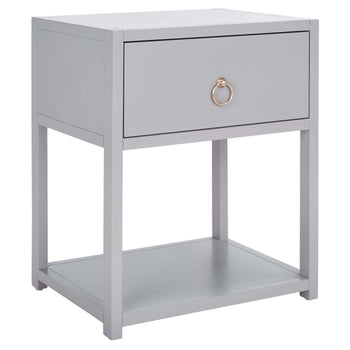 This Yudi Nightstand is ideal for today's Decor smart bedrooms with its classic silhouette and contemporary-chic style. Yudi's smooth grey finish beautifully highlights the gold pull on its drawer, while a bottom shelf provides ample space for books, magazines, or accessories.