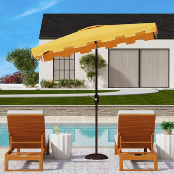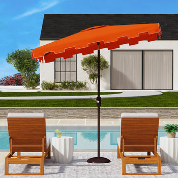 A classic market umbrella gets a stylish makeover in for a chic European flair. Its rectangular polyester canopy and brown aluminum post make it ideal for the veranda or pool deck. Includes easy crank and tilt mechanism.