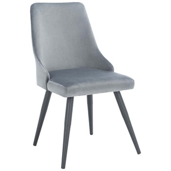 The dramatic angles and cascading curves of this Zoi Dining Chair transforms your dining room with modern glamour and contemporary chic. Zoi's slate grey velvet is ultra soft to the touch, ensuring hours of comfortable conversation around the table. Sold in sets of two.