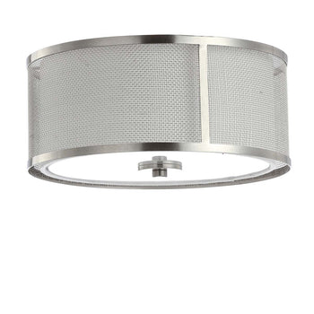 Refresh and renew any space with this contemporary flush mount ceiling light. Streamlined and sleek, its metal diamond pattern features a bright nickel finish. Inside, a white 100% cotton shade ensures that its diffused light creates a luminous glow.