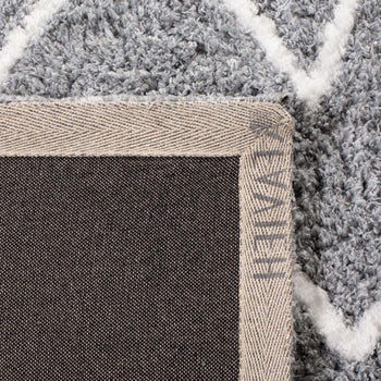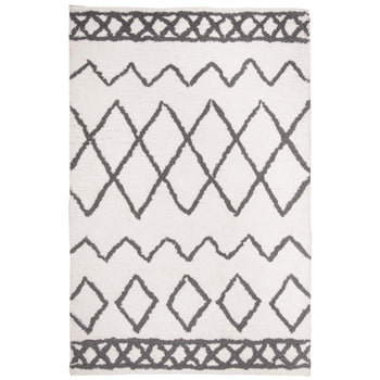 As you set your eyes on the intricate rug pattern, you'll notice a harmonious interplay of geometric diamonds and subtle tribal motifs, capturing a unique and inviting aesthetic. The edge of the rug is beautifully finished with a detailed border, adding a touch of sophistication and completing the overall design.