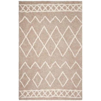 Elegantly designed in soothing beige and ivory tones, this polyester area rug boasts a timeless style that effortlessly complements any interior space. The texture and plushness achieved through the hand-tufted technique bring an indulgent underfoot experience, enhancing the rug's cozy and welcoming character.