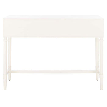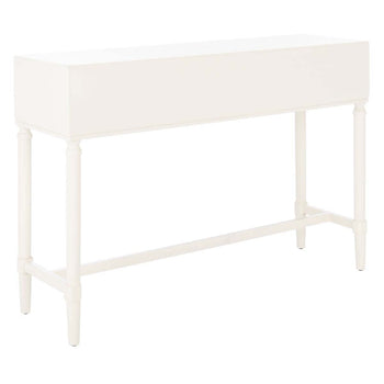 This Estella Console gives timeless elegance a fresh new look, making it perfect for any classic contemporary hall or entry. Estella's traditionally inspired carved details, gracefully turned legs, and clean white finish are beautifully juxtaposed with the sleek metal bar pulls on its four spacious drawers.