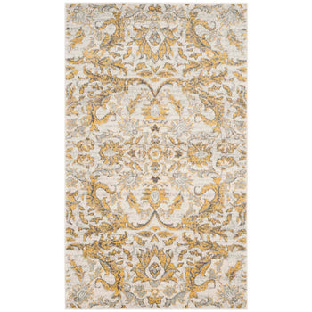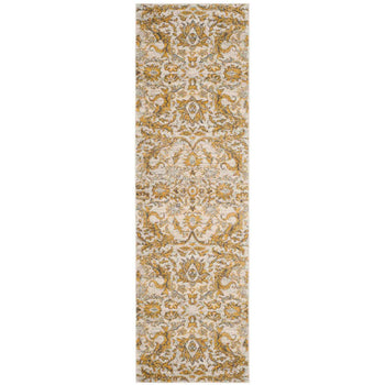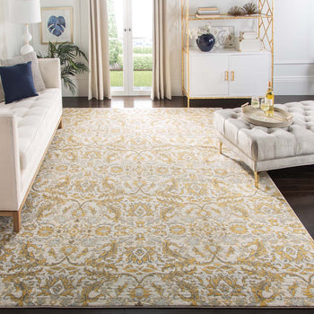 Featuring a classic pattern infused with modern color, the intricate designs showcase a harmonious blend of ivory and gold hues that evoke a sense of sophistication and warmth. The rich textures and ornate details are presented in a versatile 2'-2" X 4' size, making it an exceptional choice for accenting smaller areas or as a decorative highlight in larger rooms.