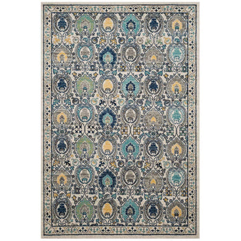 Crafted using an advanced power loomed technique, this accent rug boasts a durable and intricate weave that combines 66% Polypropylene, 27% Jute, 5% Polyester, and 2% Cotton, promising long-lasting quality and comfort underfoot. The delightful medley of floral and geometric motifs creates an eye-catching design that is versatile enough to complement both traditional and contemporary interiors.