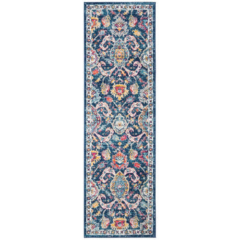 Elevate your home with the timeless sophistication of our Navy/Fuchsia Contemporary Style Runner Rug. Measuring a versatile 2'-2" X 7', this elongated piece is an exquisite blend of classic charm and modern flair. Crafted with the utmost precision using a Power Loomed technique, this runner is not only stunning but resilient as well.