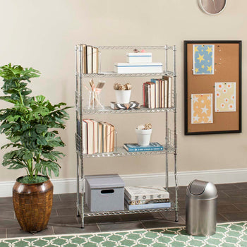 With its industrial style metallic finish, the Fernand Wire Book Rack is a perfect storage solution for the home office or study. Five deep tiers, including built in bookends on its two middle shelves, hold books, files, and tech of all shapes and sizes.