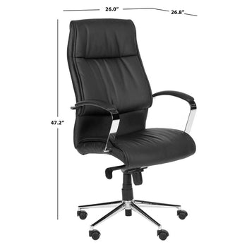 Rock around the clock. Crafted with sturdy rubber wheels, and adjustable seat and refined executive office style, the black faux leather Fernando Desk Chair will keep upper management in gear and in style. Perfect for the traditional or contemporary study or home office.