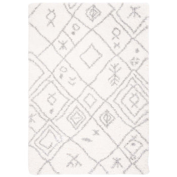 Elevate your living space with the luxurious texture and sophisticated design of our 4' X 6' Cream/Grey Small Rectangle Area Rug. Crafted with meticulous attention to detail, this shag and Flokati style rug boasts a luscious 2-inch pile height, offering an ultra-plush underfoot experience that invites you to sink into comfort.