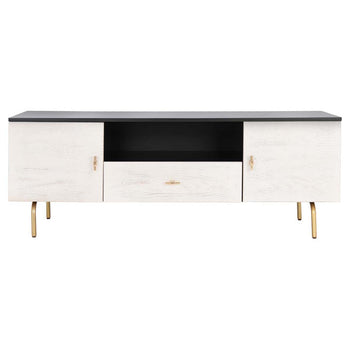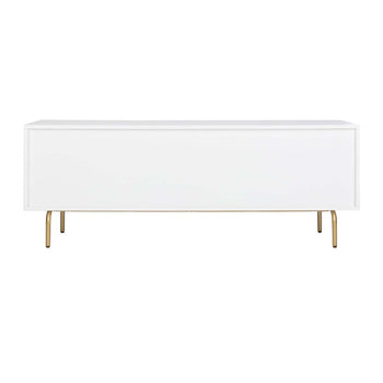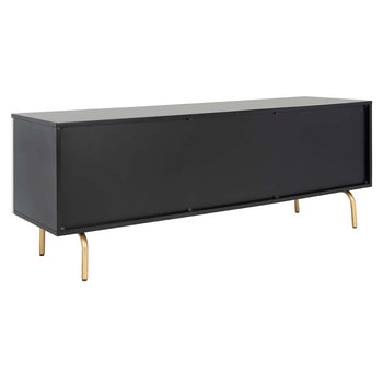 A captivating blend of luxurious materials and elegant lines, this contemporary TV stand transforms any living room into a glamorous entertainment center. Crafted of luxurious mahogany wood, its rich finish complement its rich gold legs.
