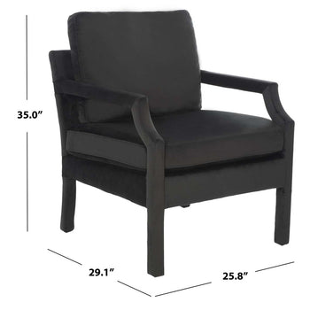 With a hint of classic design interpreted for modern decor, the Genoa Upholstered Arm Chair's refined silhouette is a perfect addition to any room. Plush velvet cushions in deep black supported on a stout pine frame create the ideal blend of comfort and style.