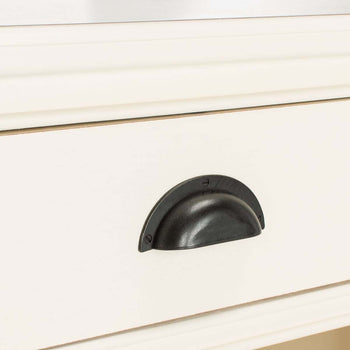 The country cottage look gets a chic new makeover in the stylish Griffin Side Table. Crafted of natural pine with contrasting half moon drawer pulls, this timeless piece is fitted with two shelves for reading material or knickknacks.