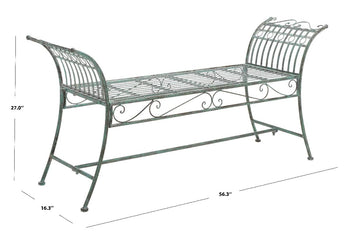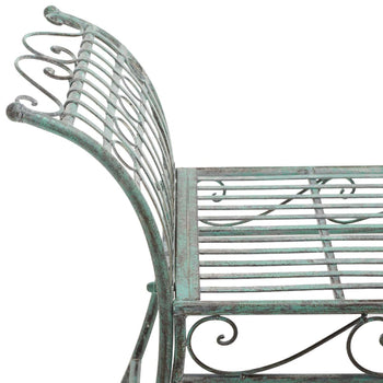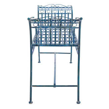 Give your outdoor decor a touch of vintage Victorian charm with this outdoor Hadley Bench. Delicately detailed with flourishing scrolls, Hadley's antique blue iron frame gives the garden, patio, or porch an enchanting, romantic ambiance.